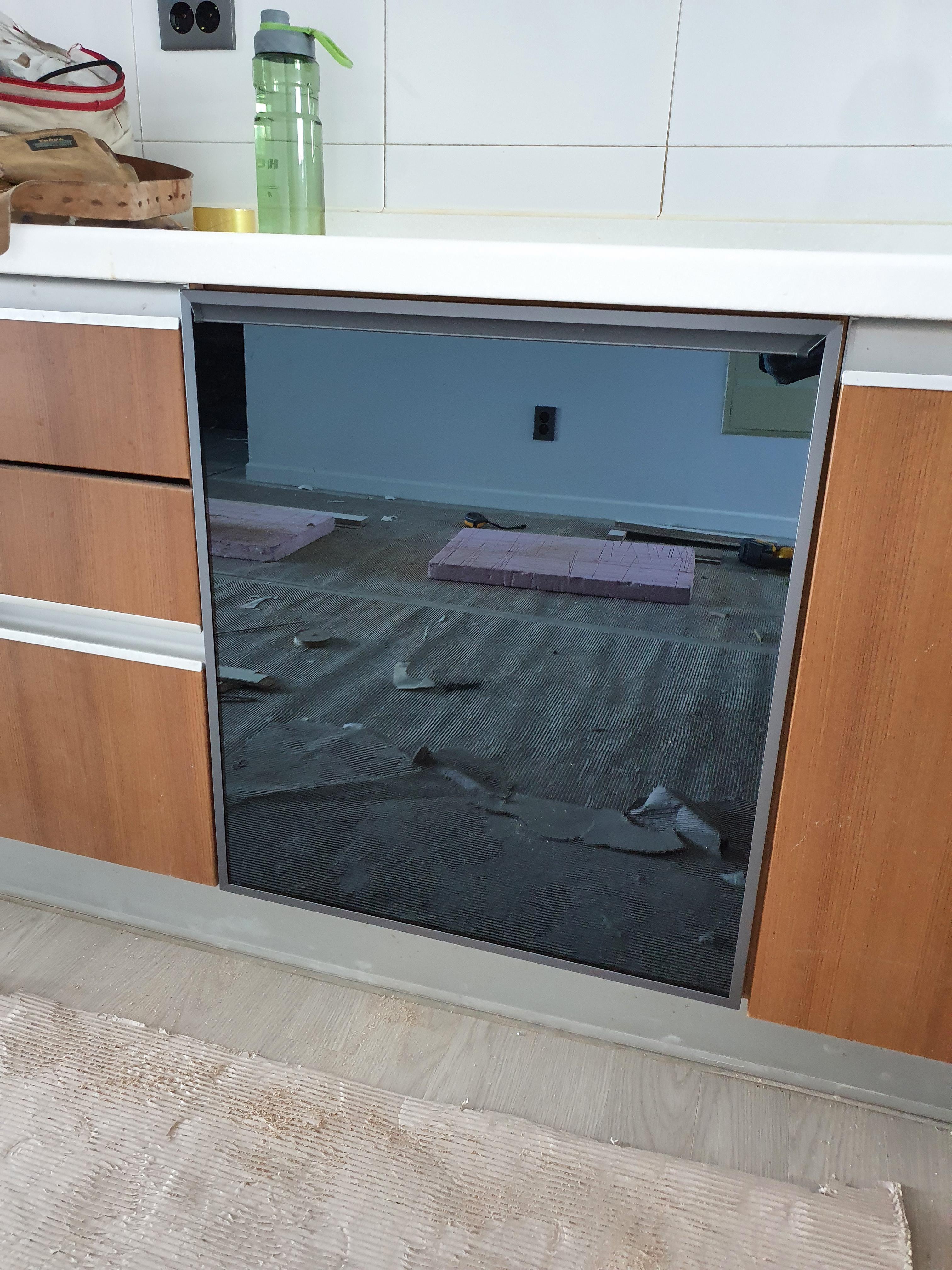 <오븐제거 후 흑경유리문으로 리폼한 사진>